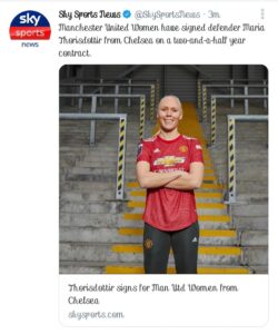 According to Sky sport, Manchester have signed the Chelsea defender Maria Thorisdottir on a deal that will keep the player at the club for two years and six months.