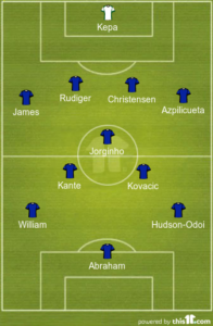 Midfield: Lampard may decide to make a change in midfield with Mateo Kovacic pushing for a recall. Jorginho is expected to keep his place in the deep lying playmaker role while it would be a huge surprise if N’Golo Kante wasn’t selected by the Chelsea boss.