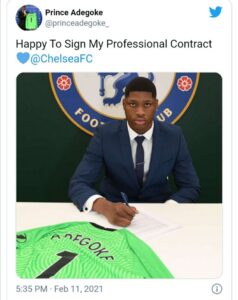 17 year old goalkeeper Prince Adegoke has confirmed he has sign his first professional contract with Chelsea.