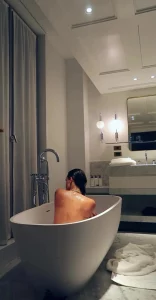 She captioned her bath video with: “Weekend vibes. What have you got planned this weekend?”