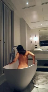 The influencer and model risked a ban on the app as she shared a video of her naked in the bath with her followers.