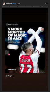 Taking to social media after the transfer was confirmed, Ziyech uploaded an image of the transfer announcement used by the Ajax on to his Instagram stories.