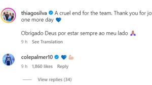 Palmer was quick to let him know what he thought of his display after the game, commenting positive emojis on his Instagram post following the game.