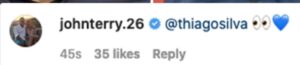 Terry sent Chelsea fans wild as he immediately liked the post and commented an eye emoji and a blue love heart. He has since deleted the comment but not without fans taking a screenshot of his comment.