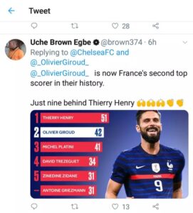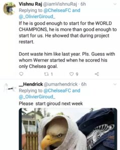 Giroud was impressive yesterday for his national team after netting two goals for them and Chelsea fans can’t understand why Frank Lampard is benching him. Chelsea fans are demanding that he should be a regular starter for Chelsea as he is always impressive and brings in more goals for the club whenever he starts.