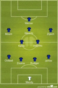 Antonio Rudiger is the man most likely to be recalled to line-up alongside Kurt Zouma in the middle of the Chelsea defence while Reece James is expected to keep his place ahead of Cesar Azpilicueta at right-back.