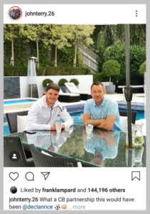 Chelsea boss Frank Lampard has liked the Instagram post of John Terry meeting the West Ham United midfielder Declan Rice.