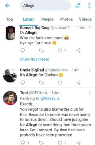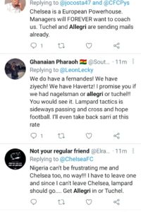 Meanwhile, Chelsea fans want the board to hire Massimiliano Allegri and sack Frank Lampard because he is not competent to coach a big club like Chelsea, despite the fact he spends $200 million on transfer last summer.