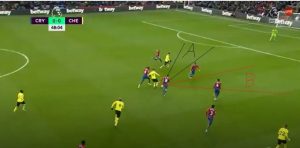 “One might try to desperately argue that he doesn’t see Azpilicueta. Even if by some chance, Azpilicueta isn’t in his peripheral vision at any point of this move (doubtful), after playing for a year in a three-at-the-back formation you simply have to understand that in transitions a wingback will try to become a passing outlet wide. Especially when you were playing wingback multiple times. So Pulisic has to know at the point of freeing himself that he has a teammate somewhere on the right side.