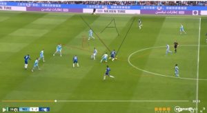“He feels Rodri making contact from the right, so he stops the ball unexpectedly, letting momentum take Rodri away from him, and creates a huge amount of free space, he’s free of players challenging him, with a lot of time to pick the next play.