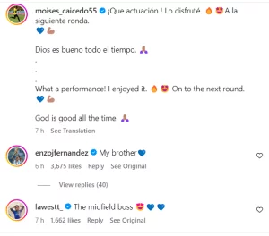 He took to Instagram to comment on the photo of fellow midfielder Moises Caicedo, sending a positive message after the Blues returned to winning ways.
