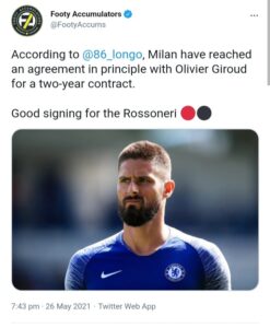 According to the reliable @86_longo via foot accumulator, “Milan have reached an agreement in principle with Olivier Giroud for a two-year contract.”