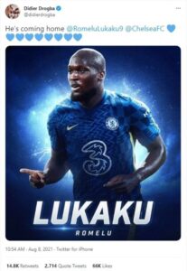Below is the confirmation of Lukaku to Chelsea deal all confirmed by Blues Legend Didier Drogba