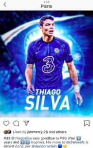 According to reports, John Terry gave his approval to the potential signing of Thiago Silva by liking a social media post that showed the PSG defender in a mocked-up Blues kit.