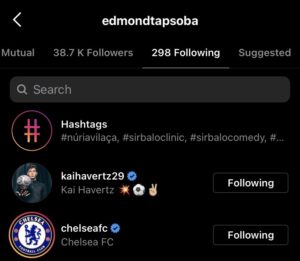Edmond Tapsoba has started following Chelsea FC on Instagram. #ChelseaExeterTV #CFC pic.twitter.com/9hmEXXUR3B