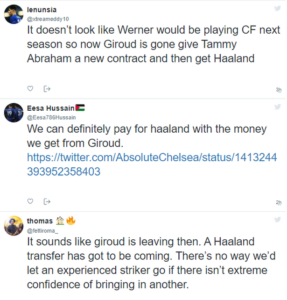 Chelsea fans have a transfer theory that involves Olivier Giroud and Erling Haaland.