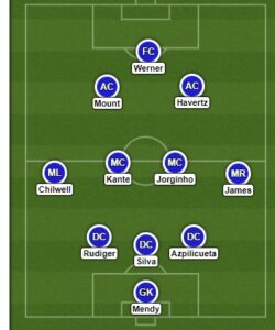 Thomas Tuchel does not have much choice in midfield with Kovacic out of contention. Jorginho is likely to partner N’Golo Kante. Mason Mount has occasionally played in the position, but he has been most effective in the attacking role.