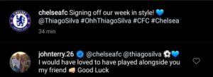 Terry commented under Chelsea’s Instagram post: “I would’ve loved to have played alongside you my friend. Good luck.”