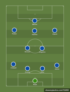 N’Golo Kante picked up an injury with France yet started the match against Southampton, so two games within a few days might prove a little too much for him. If so, Mateo Kovacic will partner Jorginho in midfield.