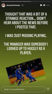 See the image above as Drinkwater seeks to calm the reaction to his post, stating that he had huge respect for Lampard as a player.
