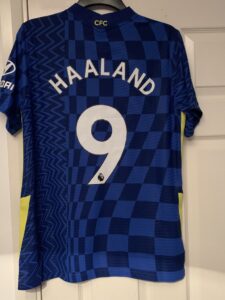 (Photo): ‘Welcome’- Checkout how Confident Chelsea fan printed ‘Haaland’s’ name on new Blues kit