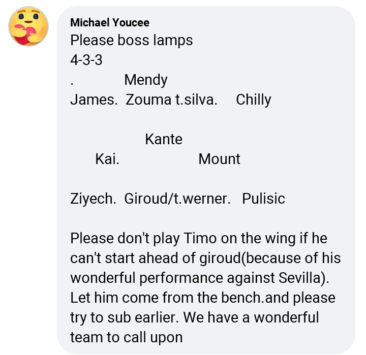 Chelsea fans took to their various social media handles to give Frank Lampard advice as the offered their various preferred formations and team lineups.