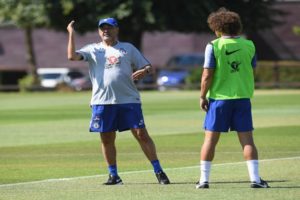 Maurizio Sarri took charge of his first training session on Monday after replacing Antonio Conte as Chelsea’s boss.