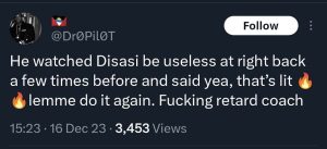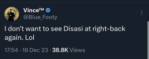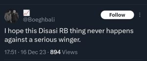 “I hope this Disasi RB thing never happens against a serious winger.”