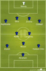 Midfield: Chelsea are expected to recall Jorginho after he was given a breather at the weekend. The Italian international should line-up alongside N’Golo Kante in the middle of the park with Mateo Kovacic missing out.