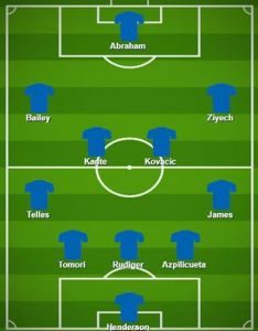 Dean Henderson; Fikayo Tomori, Antonio Rudiger, Cesar Azpilicueta; Alex Telles, N’Golo Kante, Mateo Kovacic, Reece James; Leon Bailey, Hakim Ziyech, Tammy Abraham.