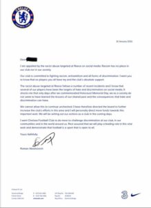 “We will be setting out our actions as a club in the coming days.” Abramovich then concludes by saying he wants Chelsea to “do more to challenge discrimination at our club, in our communities and in the world around us.”