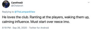 “He’s not speaking the language enough to do it in that sense, but it doesn’t matter with someone like him,” Lampard explained pre-match, per Metro.