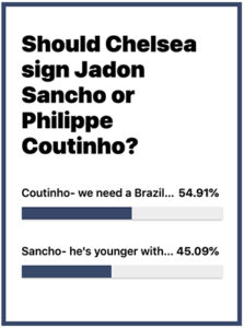 There have been reports that the Blues may only go after Coutinho if they lose out to Manchester United for Sancho, but it appears Blues fans would want the Brazilian playmaker instead anyway: